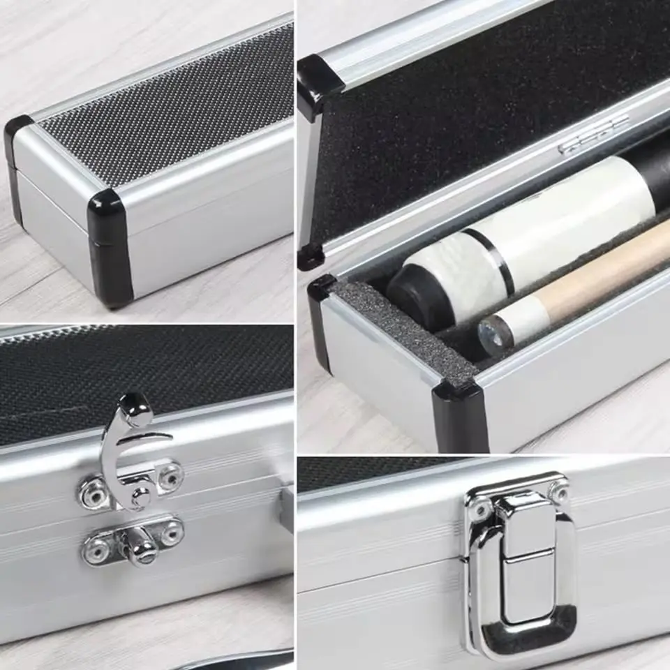 Якщо ви шукаєте надійне та стильне рішення для зберігання та транспортування вашого кия, алюмінієвий кейс для басейну — чудовий вибір. Міцна конструкція, легкість і захист від вологи роблять його незамінним аксесуаром для кожного гравця в більярд. У такому випадку ви можете бути впевнені, що ваш кий завжди буде готовий до гри на найвищому рівні.