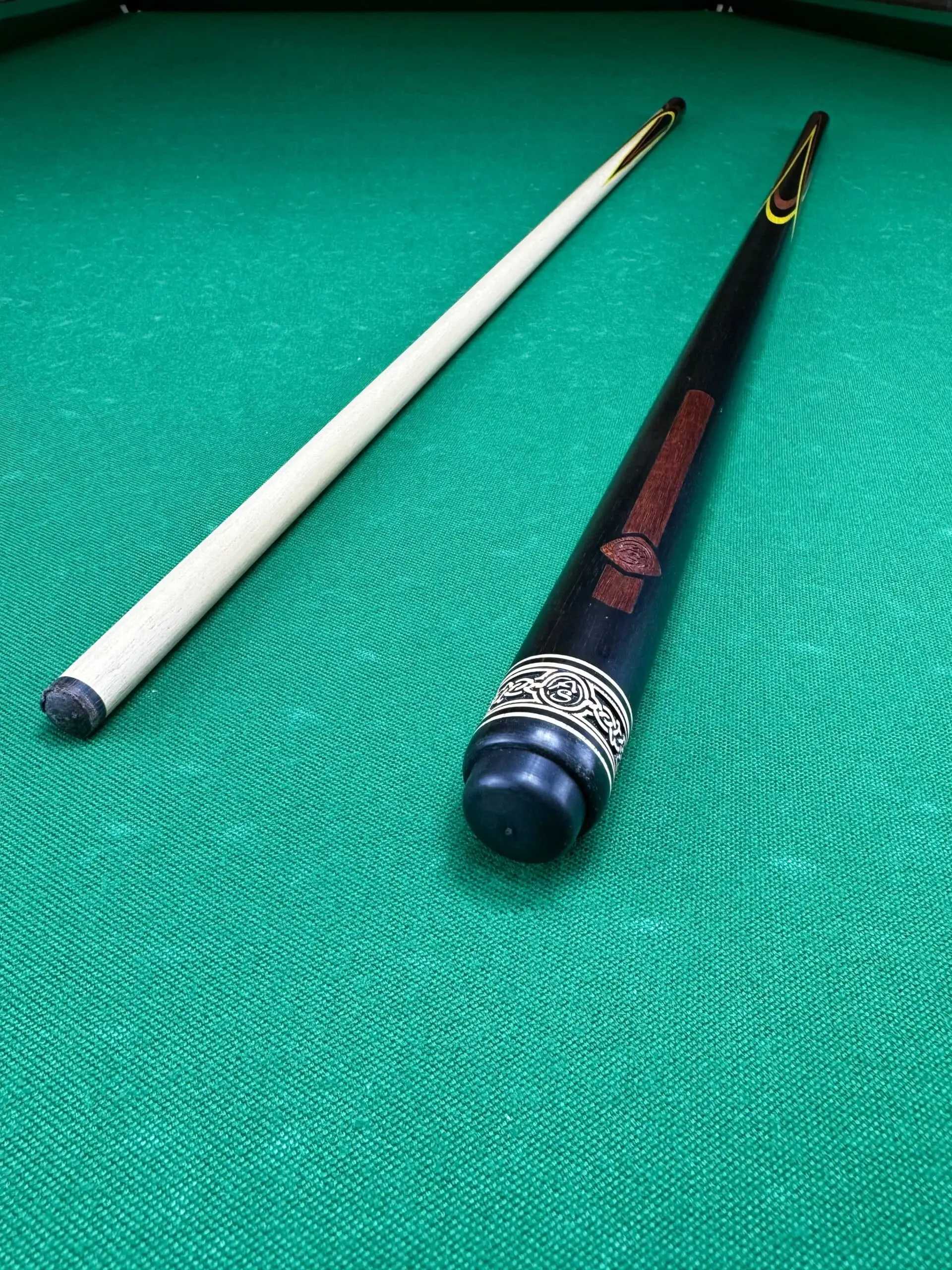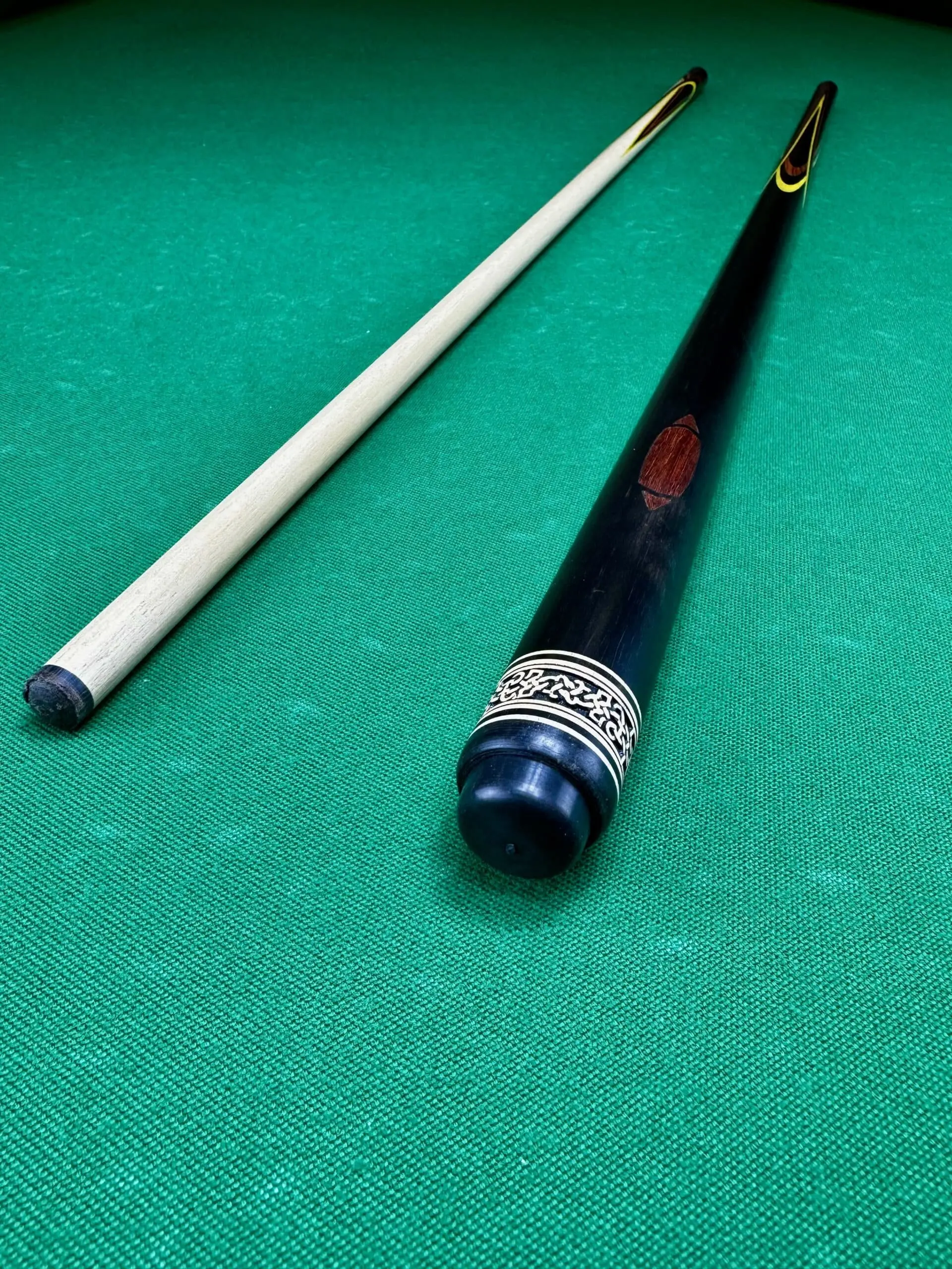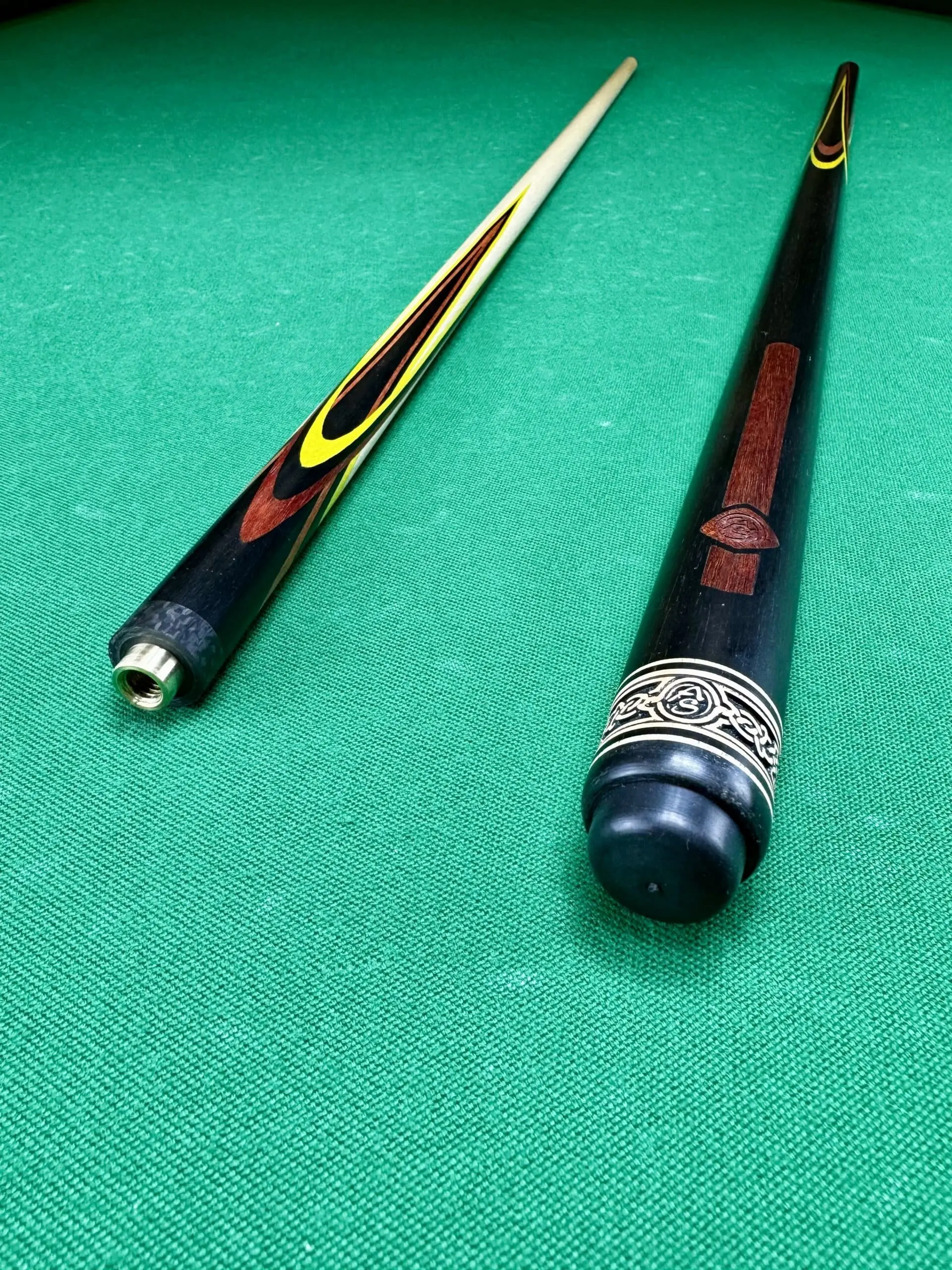 Будьте першим, хто залишив відгук на “Більярдний кий Квітка (папуга) чорне дерево + жовтий + червоний граб 4 радіальне натягування AS”