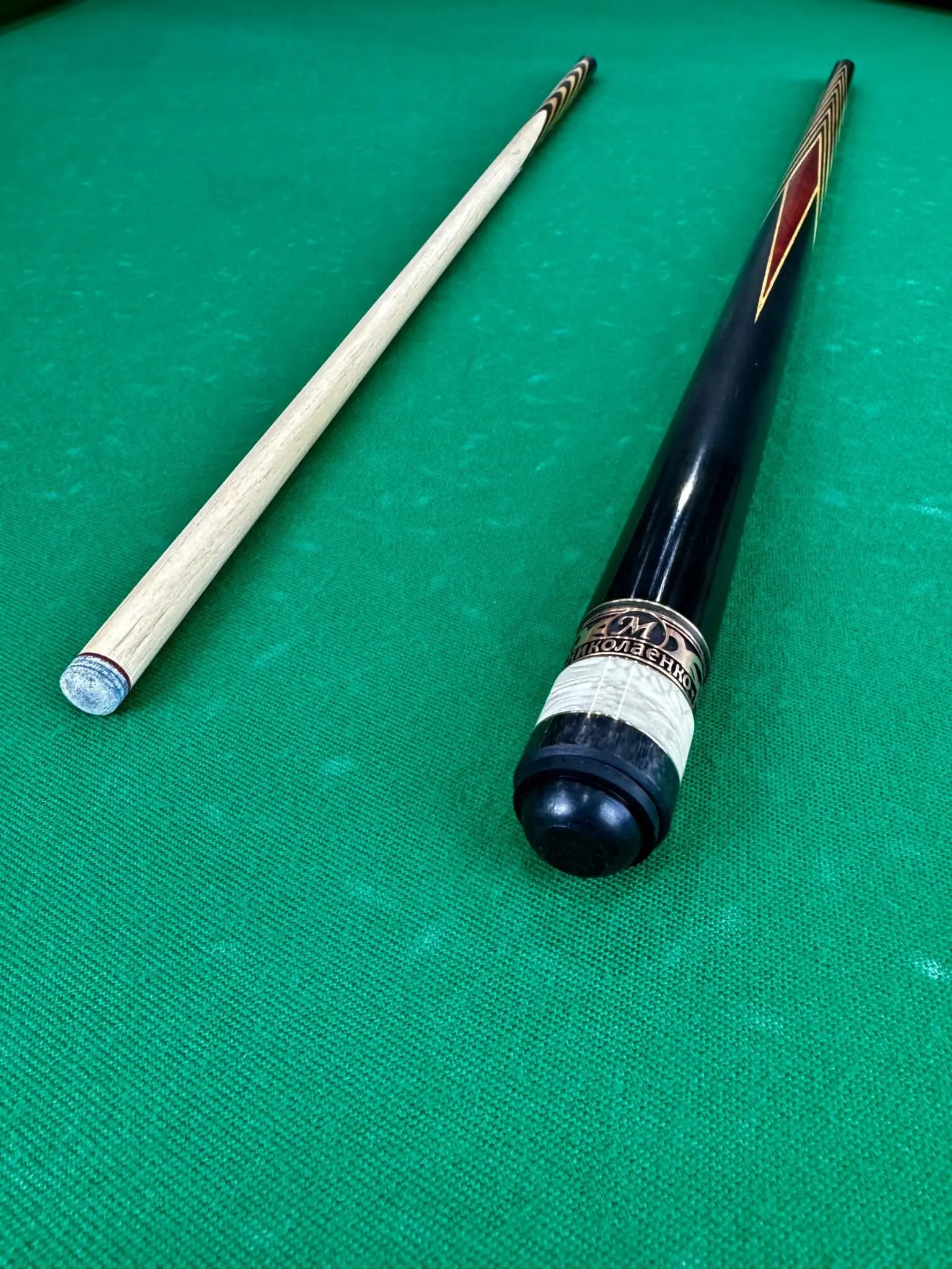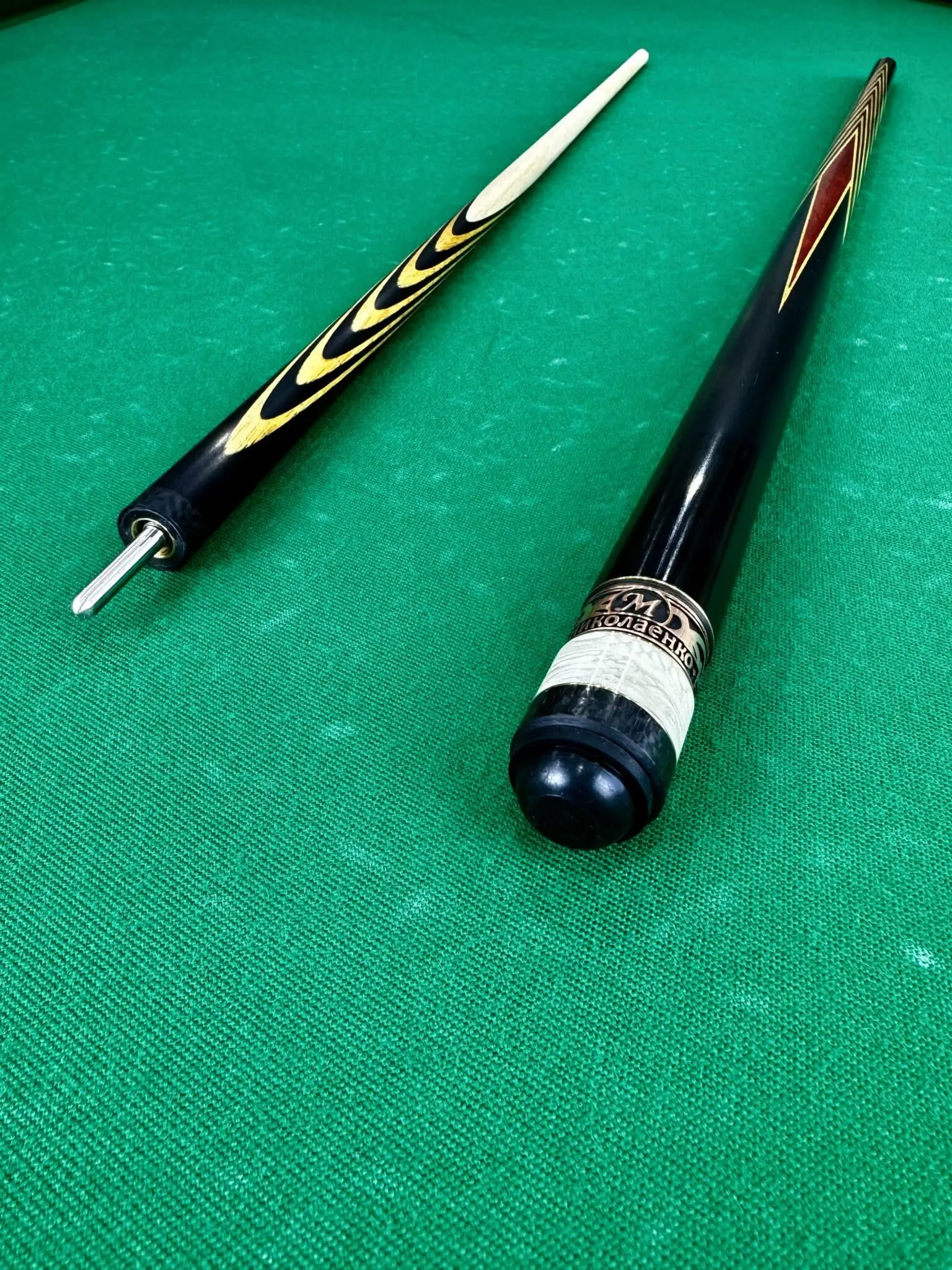 Більярдний кий Ніколаєнка: 12 розрізів, чорний граб і вставка падук – мистецтво і точність у кожній деталі