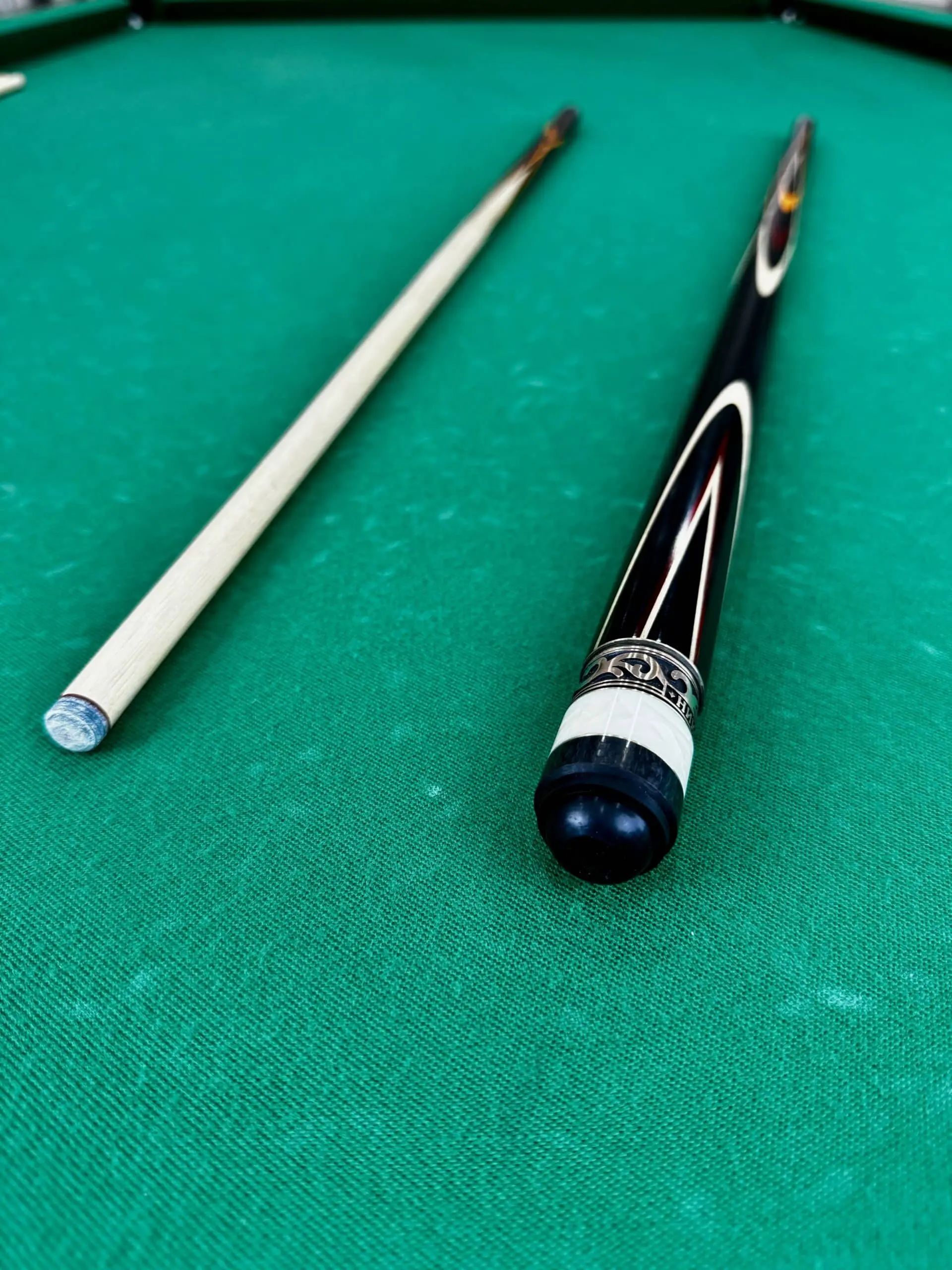 Кий, зроблений із чорного граба та амарілло з вставкою для падуки, — це не просто інструмент, а відображення особистості гравця. Максим враховує всі побажання своїх клієнтів, створюючи сигнали, які ідеально відповідають їхньому стилю гри та особистим уподобанням.