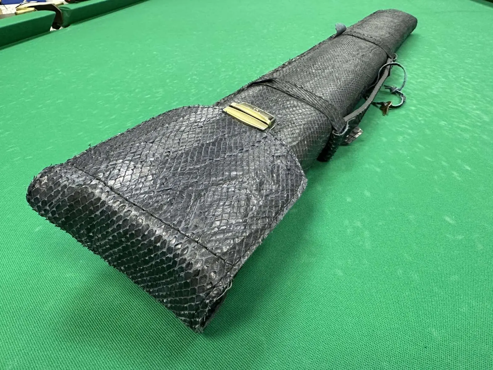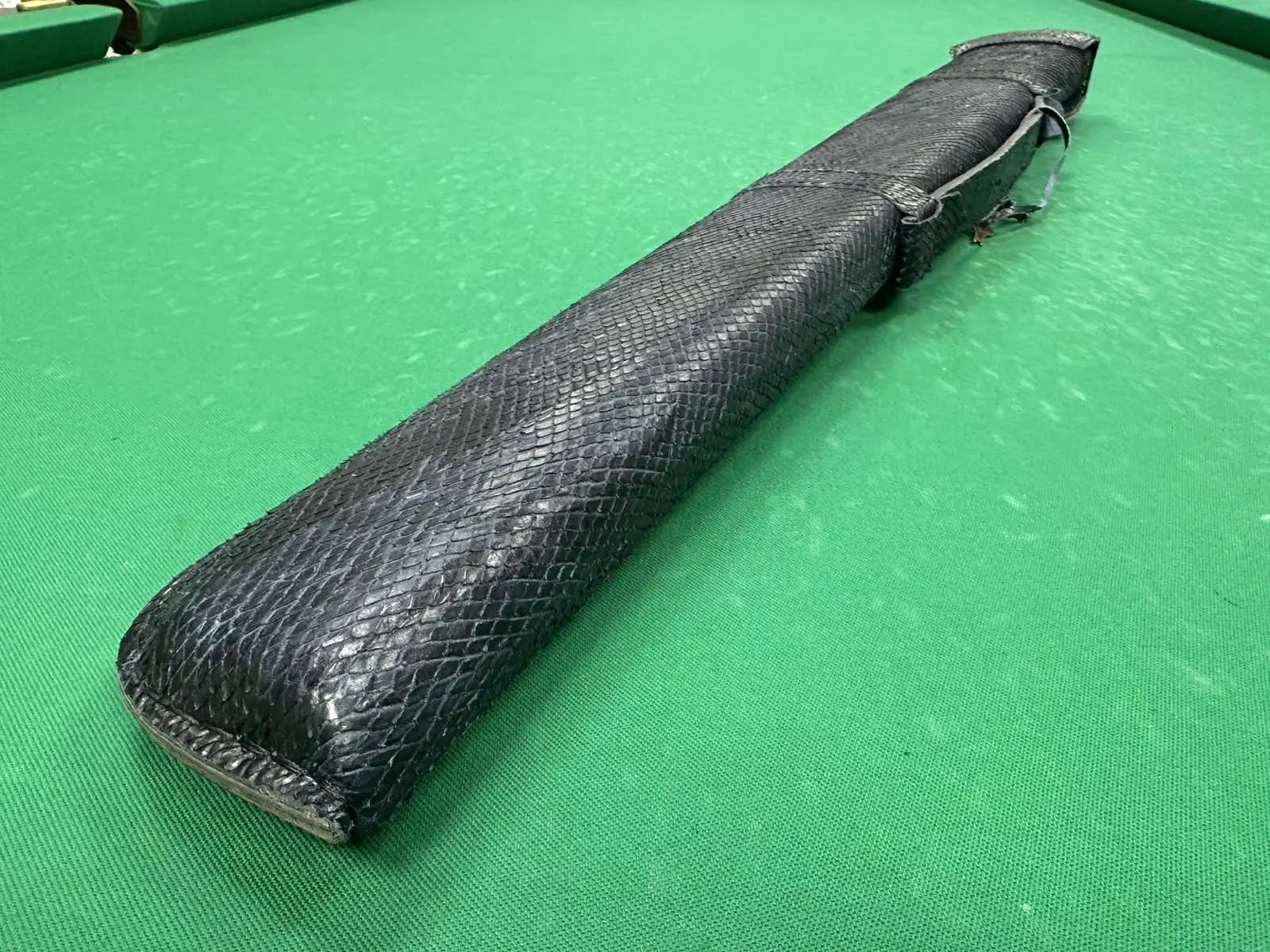 Сафарі-більярдний кийок у темно-синій версії зі зміїної шкіри — це аксесуар, який підкреслює впевненість і стиль справжнього гравця. Її виразна текстура з рельєфу зі змією створює образ елітного обладнання, а глибокий темно-синій колір додає міцності та сучасності.