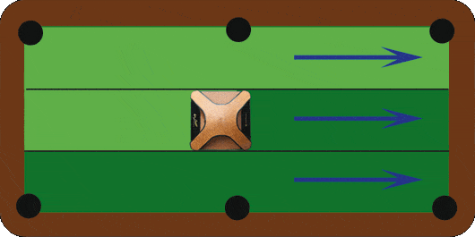 Після очищення ігрової поверхні столу, включаючи горизонтальну частину бортів, розгладьте пристроєм паралельні лінії сукна, щоб надати тканині охайного вигляду.