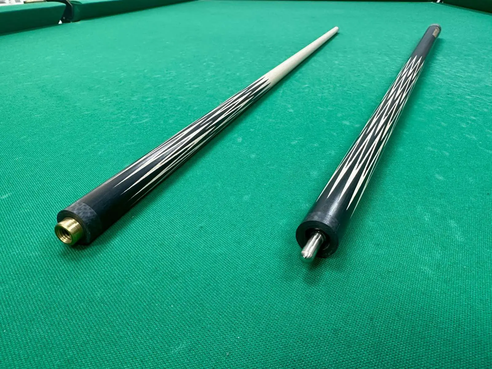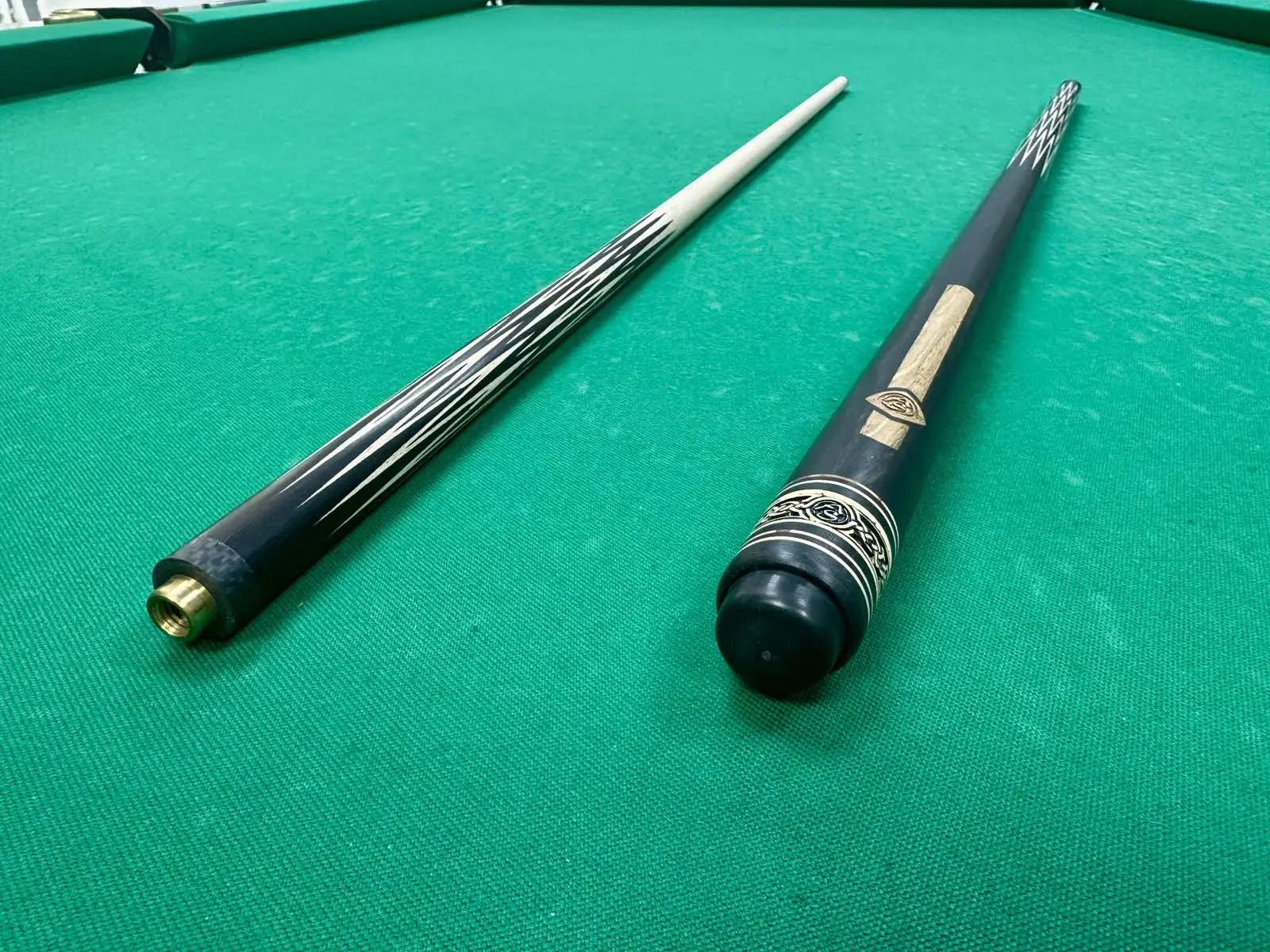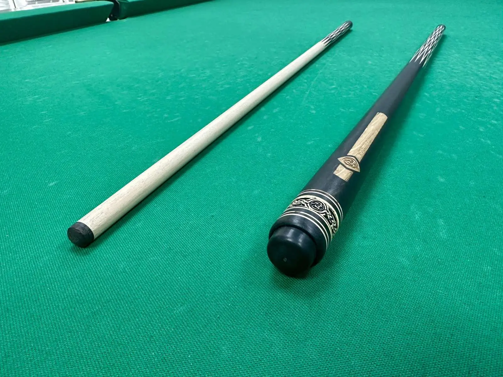 В основе конструкции — редкий и благородный эбен, известный своей исключительной плотностью, выразительной текстурой и великолепной акустикой удара. Двенадцатиперьевая запиловка вносит в кий не только эстетическую изысканность, но и обеспечивает великолепную точность и контроль, делая каждый удар максимально предсказуемым и уверенным.